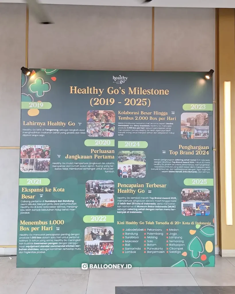 Oleh karena itu, perayaannya harus dibuat sehangat mungkin untuk dikenang. Suasana acara harus mampu merefleksikan rasa bangga, prestisius, dan kegembiraan. Baru-baru ini, Ballooney dipercaya untuk mendekorasi acara syukuran salah satu klien kami yaitu Healthy Go, yang berhasil memecahkan Rekor MURI atas penghargaan “Penyedia makanan sehat pertama dengan varian menu berbeda dalam satu tahun.”