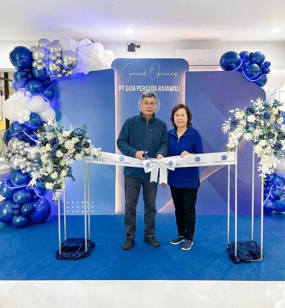 Momen sakral peresmian adalah saat gunting pita. Kami menyediakan set lengkap mulai dari pita hias yang cantik, nampan, hingga gunting emas (golden scissors) ceremonial. Momen ini wajib terlihat bagus karena biasanya akan masuk ke liputan media atau konten media sosial. Berikut adalah salah satu contoh yang kami kerjakan untuk salah satu klien kami , PT Gita Persada Rajawali, saat meresmikan kantor baru mereka